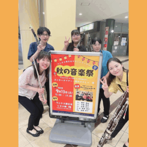 木管楽器ならではの柔らかな雰囲気を大切にした演奏で、福祉施設や商業施設、幼稚園、小学校など様々なところへお伺いします。